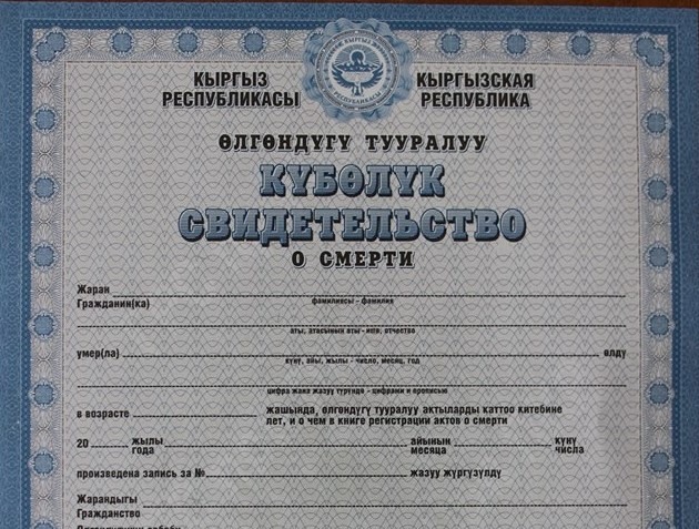 Саламатсызбы! Менин апам жер алуу үчүн кезекке турган. Жер ушул жылы бөлүндү, токтом колубузга тийди. Апам 2018-жылы ноябрда кайтыш болуп калган. Жер апамдын атына чыгыптыр. Өзүмө которуп, кызыл китеп жасатыш үчүн апамдын өлгөндүгү тууралуу кара кагазы керек экен. Биз аны алалбай жатабыз. Айыл өкмөтүнө, поликлиникага, аймактык тескөөчүлөргө кайрылдык.