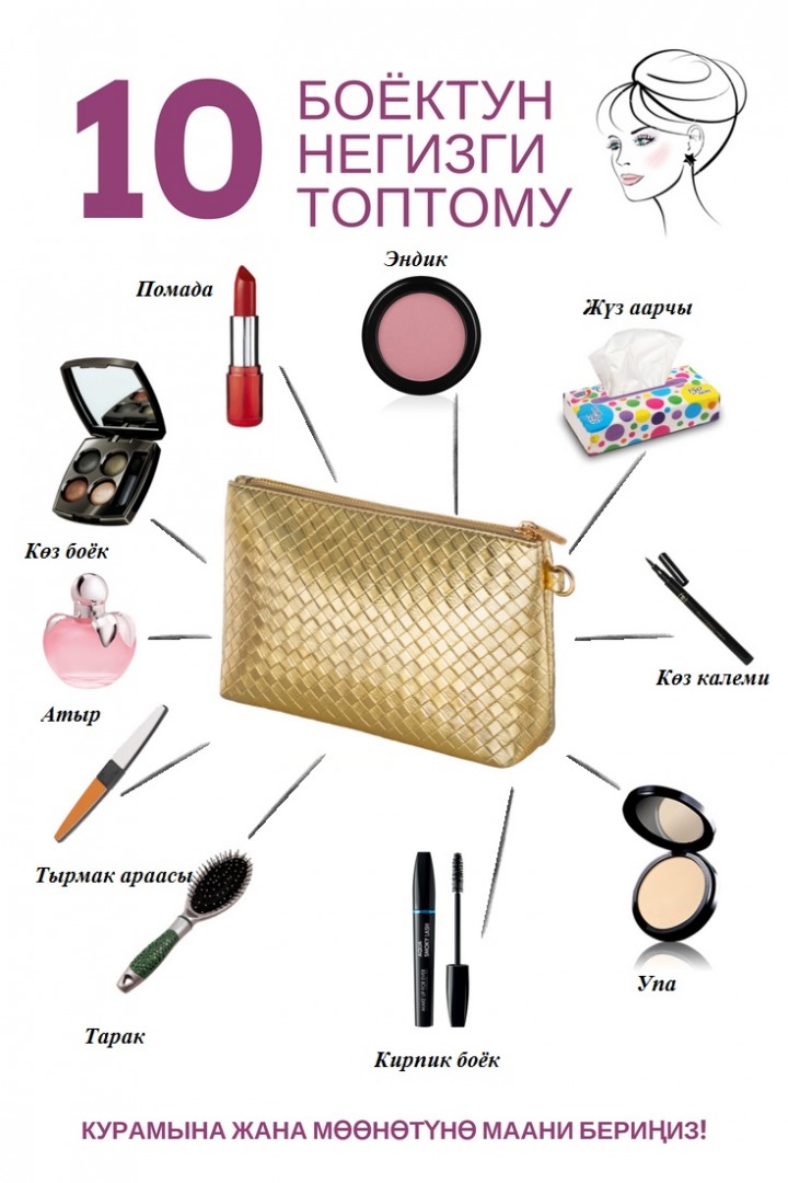 Албетте, кутучага косметикалардын баардык түрү киргизилген жок. Бирок, күнүмдүк турмуш үчүн, булар сизге жетиштүү болот.