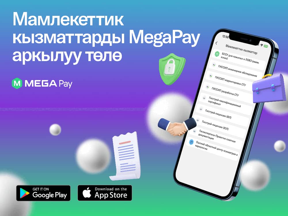 MegaPay (жүктөп алуу үчүн App Store жана Google Play’де жеткиликтүү) мамлекеттик кызматтар үчүн төлөм жүргүзүү процесстерин жөнөкөйлөтөт, колдонуучуларды түзүмдөр жайгашкан даректерге, банк бөлүмдөрүнө баруу түйшүгүнөн арылтат.