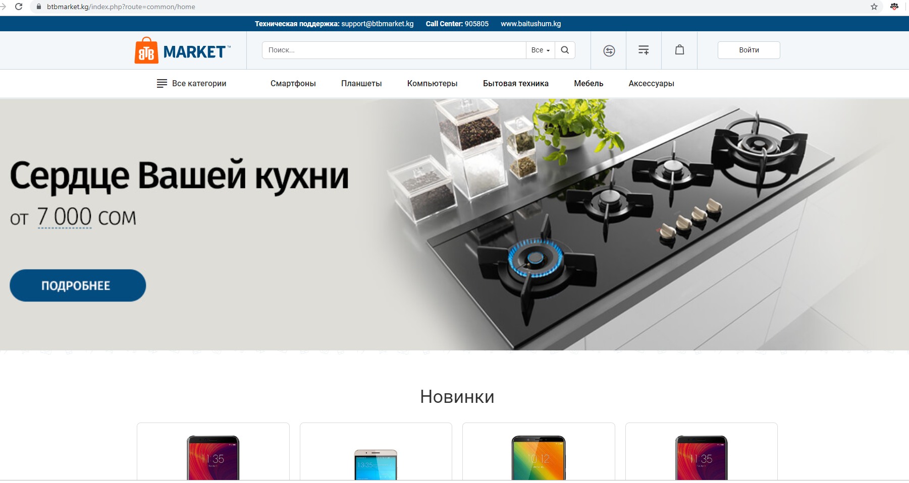 Азыр www.btbmarket.kg сайтынан электрониканы, үй-тиричилик техникалырын сатып алууга болот. Акырындык менен жеткиликтүү товарлардын тизмеси көбөйөт. Жакынкы аралыкта автомобиль, саякатка жолдомо сыяктуу нерселерди сатып же насыяга алуу мүмкүнчүлүгү пайда болот.