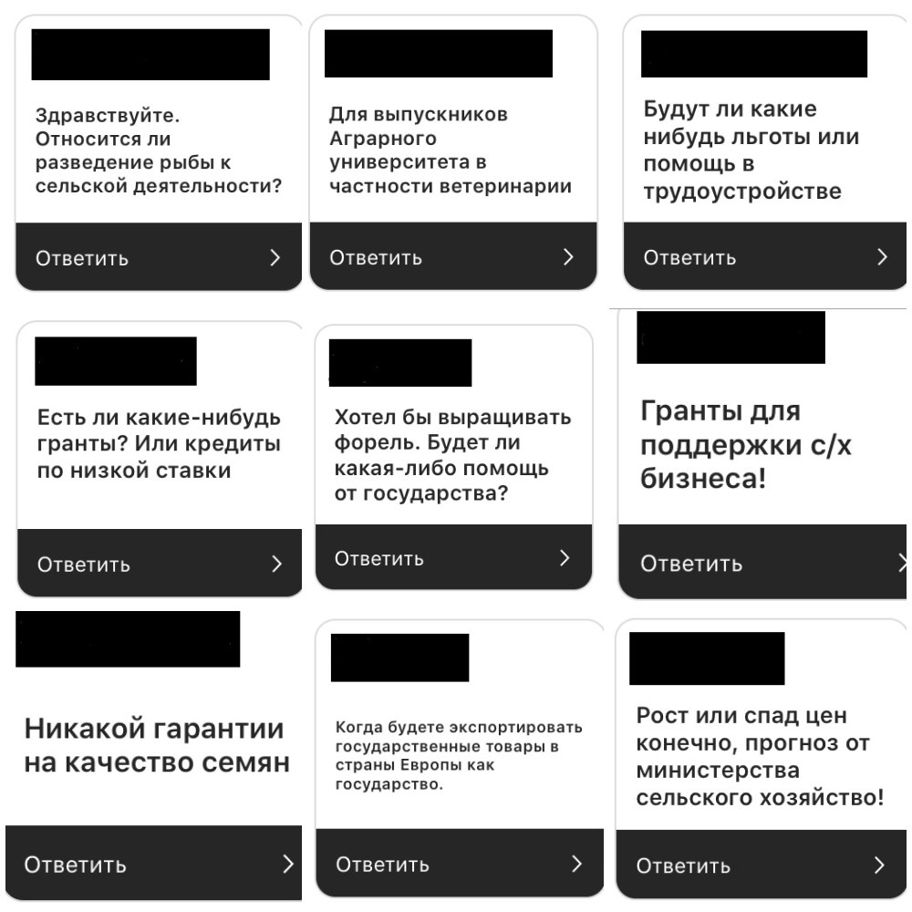 Кыргызстанда жүз миңдеген аграрийлер бар экендигин жана алардын тиешелүү бөлүмгө суроолору болушу мүмкүндүгүн эске алганда, сайтта байланыш номерлеринин саны жетишсиз. Болгону дароо чалып байланыша албаган ведомстволордун башчылар көрсөтүлгөн.