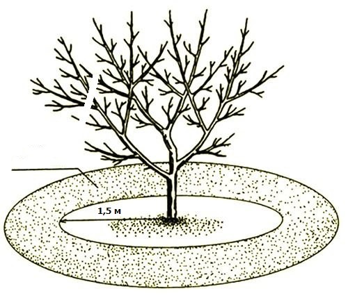 Органикалык жер семирткичтерди сөзсүз эле сөңгөктүн түбүнө киргизүү зарыл эмес, дарактын тулку боюнан 1-1,5 м радиуста 8-10 см жер казып, топурак менен аралаштырып койсо болот.