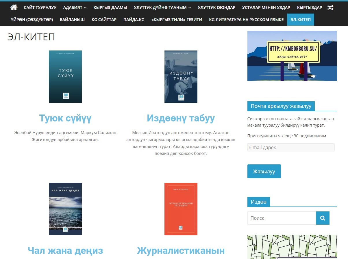 Кыргыз маданият борбору сайтындагы электрондук китептер смартфонго, букридерге жана компьютерге жүктөп окуганга ыңгайлаштырылган.
