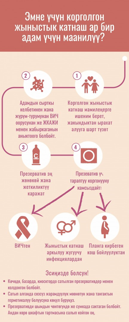 Ошондой эле «Презерватив менен туура колдонуу эрежелерин» бул жактан окуңуз.