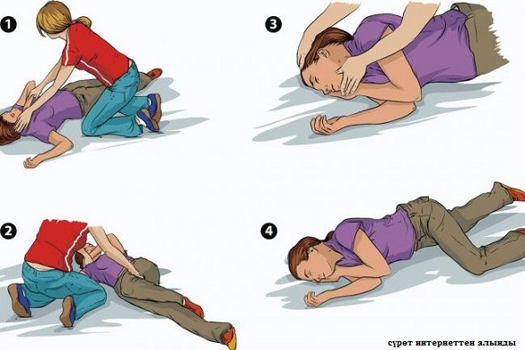 - Баланы кыйгачынан жаткырып, оозунда бир нерсе болсо алып салуу