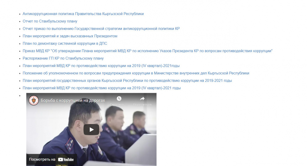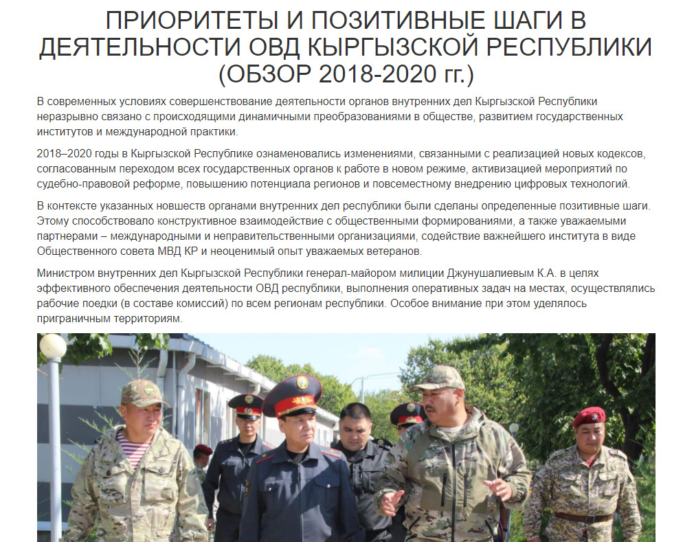 Башкы беттеги оң тилкеде сайттын бир нече бөлүмдөрүнө жана башка порталдарга шилтеме берилген. Эмне үчүн Ички иштер министрлигинин 2018-2020-жылдардагы ишине оң баа берүү керек экендиги түшүнүксүз. Бул сын-пикирде отчеттор жок.