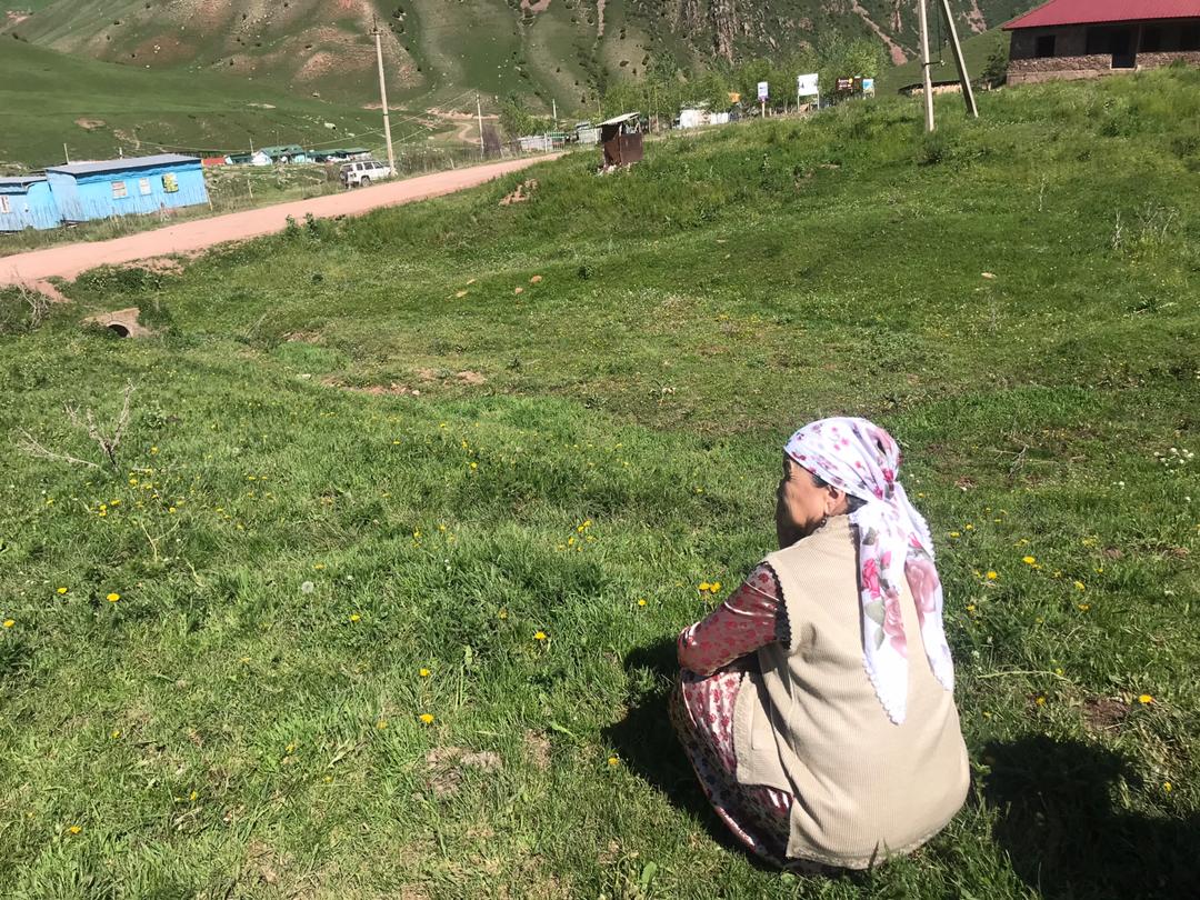 Кайын энем акыркы эки жылдан бери төшөктөн турбайт. Күн чыкканда жетелеп эшикке алып чыгам. Бир аздан кийин эле киргизем, болбосо ооруп калат. Кошуна вагондогу эжелер бээ саашат. Аларды аңдып турам. Сааганда чуркап барып бир кружка саамал көтөрүп келип, кайын энеме ичирем. Ал сүтүн ичкиче, тизесине май сүйкөп, укалап берем.