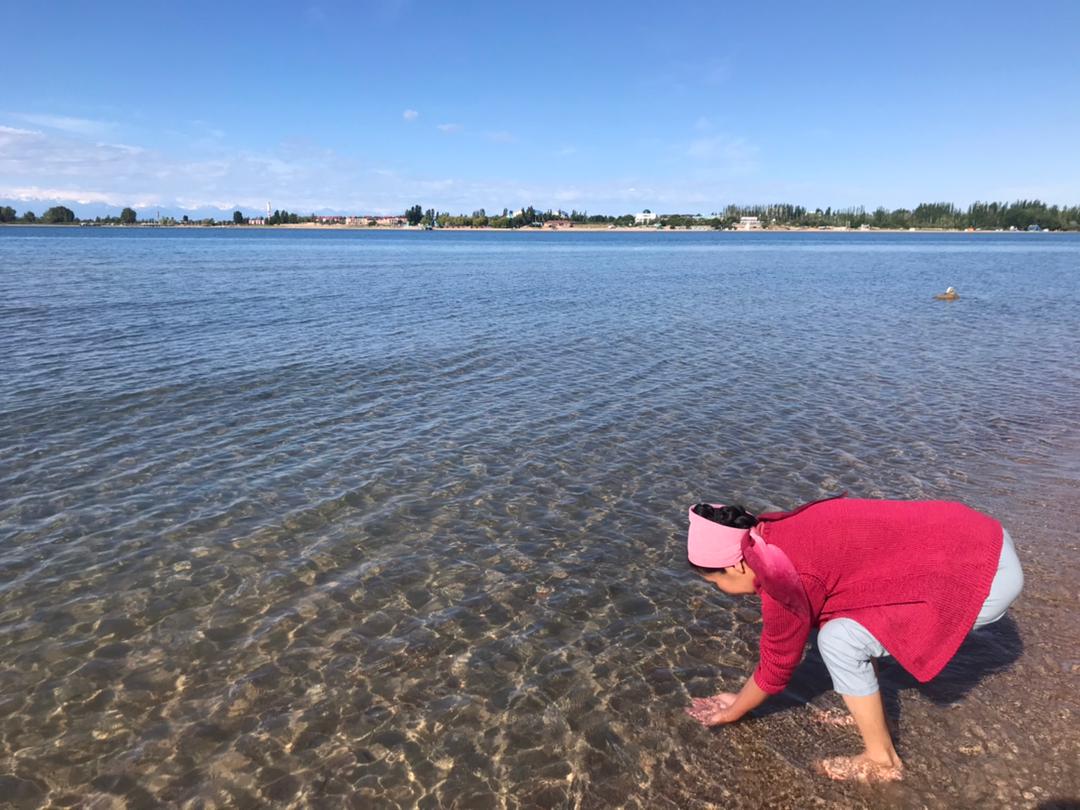 Курбумдун үйүнө барып, сумкаларыбызды таштап, көлгө жөнөдүк. Кайын энем чуркап барып ийиле суусун алып, жүзүн жууп, ыйлап жиберди.