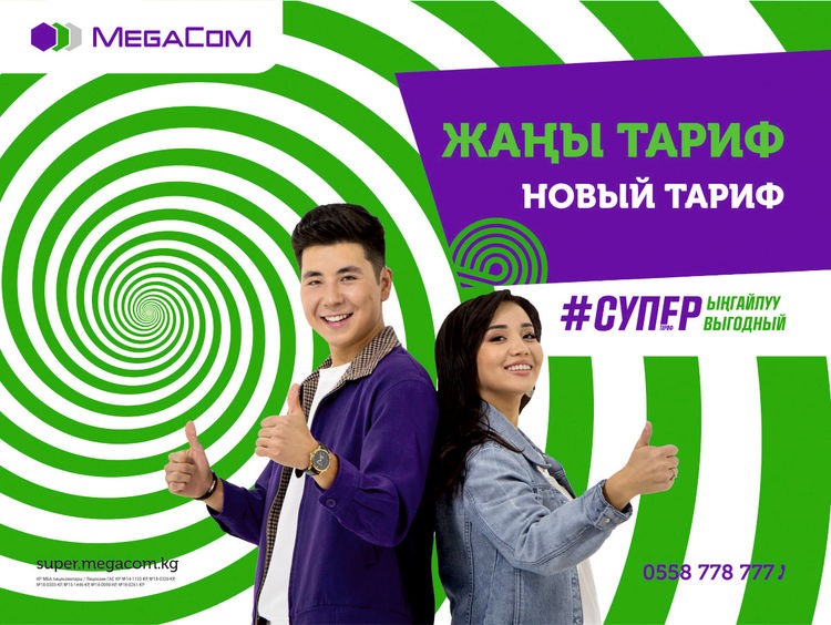 MegaCom операторунан #СУПЕРЫҢГАЙЛУУ тарифин туташтырып алып, көбүрөөк интернетке, акысыз мүнөттөргө жана SMS билдирүүлөргө ээ болуңуз.