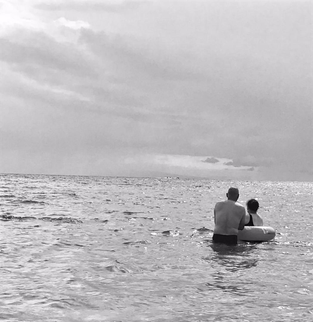 Кайын атам, кайын энеме сүзгөндү үйрөтүп жатты. Балонду кийгизип койгон. Эринбей ары чуркап тартат, кайра бери чуркайт. Бир маалда кайын энемдин буту карышып калды. Кайын атам суунун түбүнө кирип ушулап кирсе болобу. Анан кайын энемден биринчи жээкке чыгып сүлгүнү даярдады. Кайын энем чыгары менен чоң сүлгүгө жаш баладай кылып ороп, чачын кургата баштады. Отурганда жонуна күндөн коргоочу кремь сүйкөп берди.