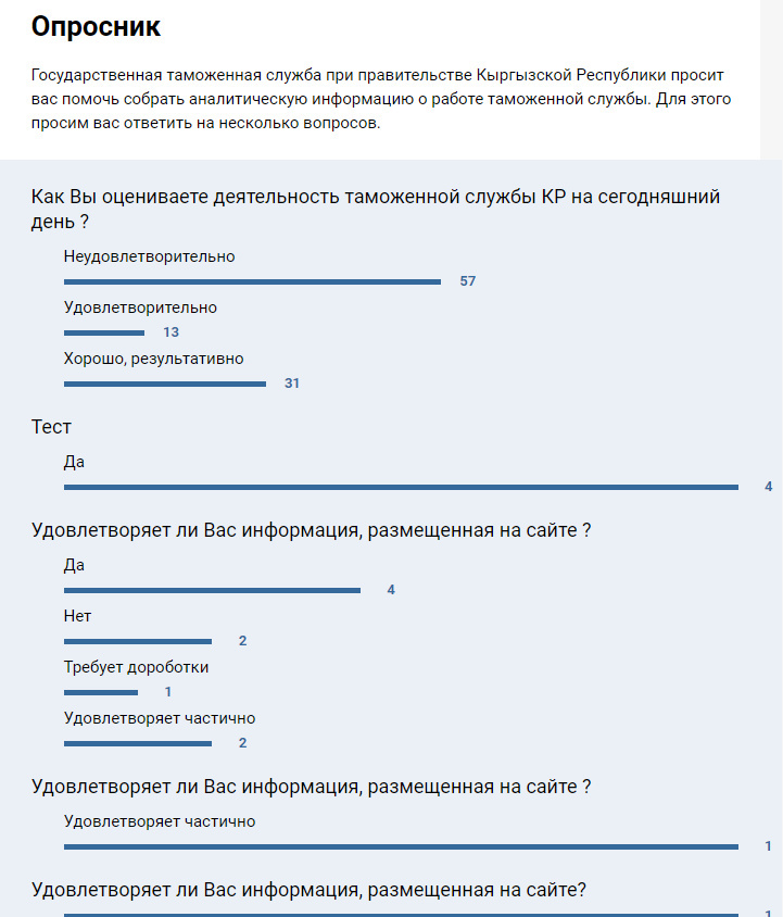 Ар бир баракта колдонуучуга бажы кызматынын ишмердүүлүгүн кандайча баалай тургандыгы жөнүндө сурамжылоо коштолот. Почтага кирип, натыйжалары менен таанышып чыктык.