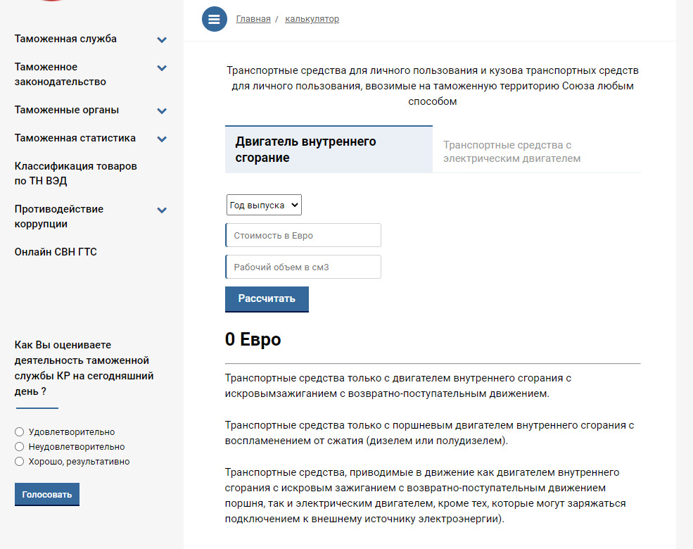 Оң тилкеде автоунааларга бажы төлөмдөрүн эсептөөчү калькулятор бар. Кыязы, бул кенен аудиторияга пайдалуу боло турган бир нече бөлүмдөрдүн бири. Эгер аны колдонгон болсоңуз, комментарийге пикир калтырыңыз.