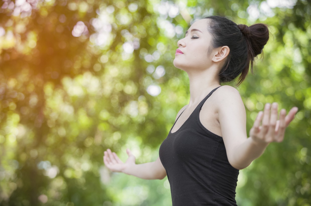 Бир танооңузду колуңуз менен жаап, экинчиси менен терең дем алыңыз, дем алган таноонү жаап, экичиси менен демди чыгарыңыз. Алмак салмак бир нече жолу кайталаңыз.