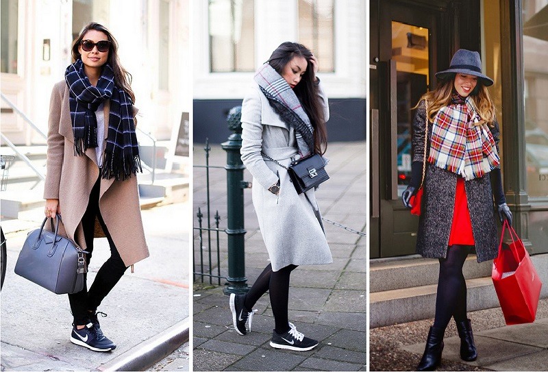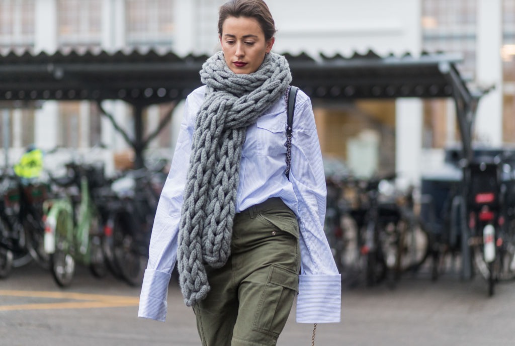 Көлөмдүү шарфты кашемир пальто, блейзер, жакет же тренч менен тагыныңыз.