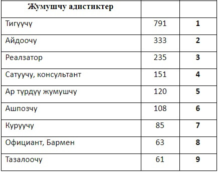 Кыргызстандагы жумушсуздуктун күндөн-күнгө оорлоп, көрсөткүчүнүн өсүп жатканынын себебин улам кесип тандоодо чоң жоопкерчилик талап кылына баштады. Эмгек жана социалдык өнүгүү министрлигинин берген маалыматына ылайык Кыргызстандын эмгек базарында төмөнкү кесип ээлерине суроо-талаптар жогору: