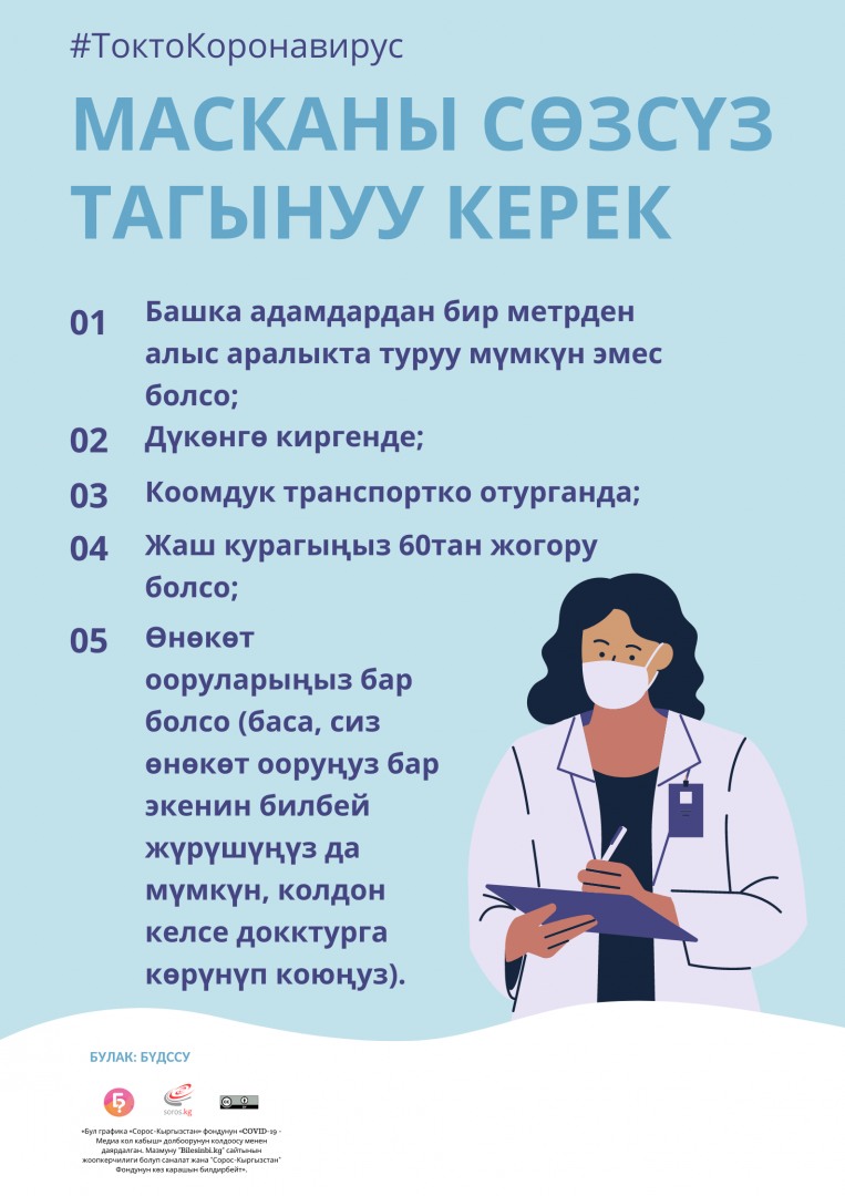 «Бул инфографика «Сорос-Кыргызстан» фондунун «COVID-19 — Медиа кол кабыш» долбоорунун колдоосу менен даярдалган. Мазмуну «Bilesinbi.kg» сайтынын жоопкерчилиги болуп саналат жана «Сорос-Кыргызстан» Фондунун көз карашын билдирбейт».