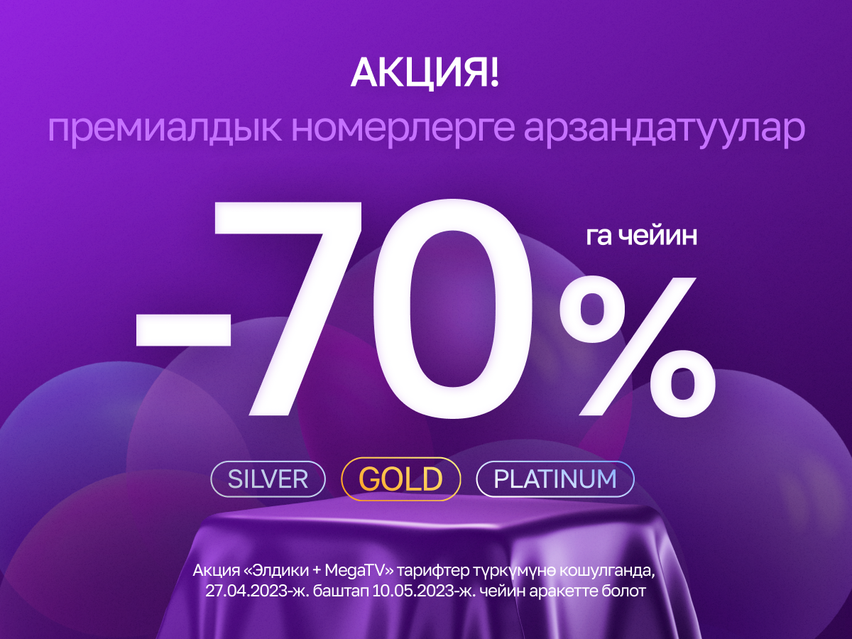 Пайдалуу баалар менен VIP-номерлердин ээси болуу эң жөнөкөй. Бул үчүн компаниянын каалаган кеңсесинен «Элдики + MegaTV» тарифтик тизмектеринин биринен SIM-карта сатып алуу жетиштүү.