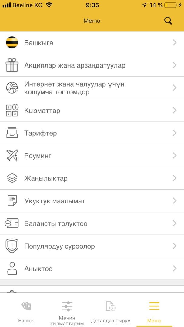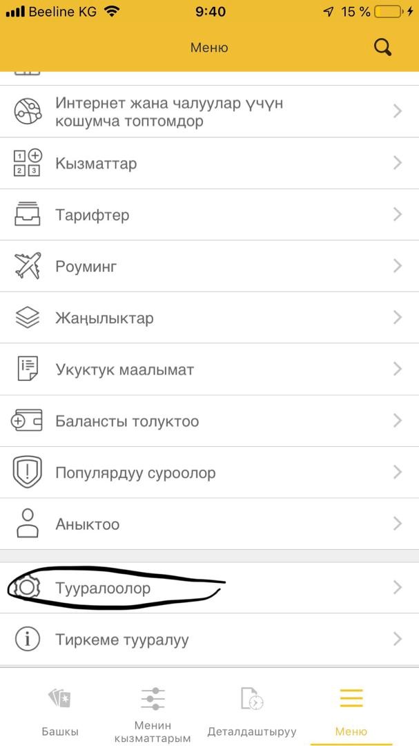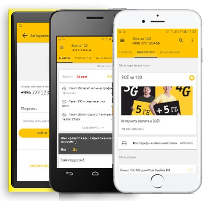 Тиркеменин жардамы менен оңой эле кызматтарды жана тарифтерди туташтырып же өчүрүп, балансты текшерип, жакын арадагы Билайн кеңселеринин даректери менен акциялар тууралуу биле аласыз.