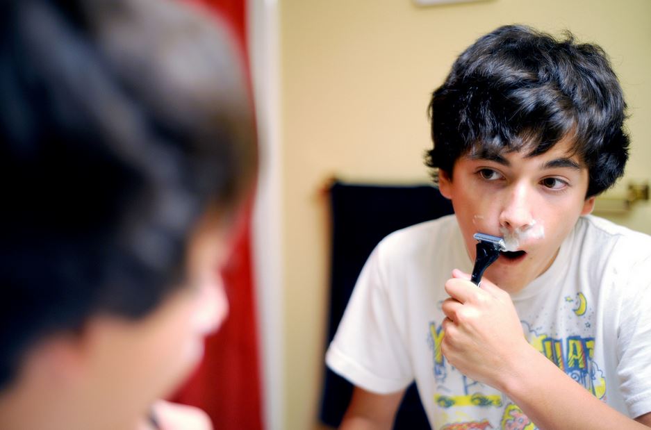 Эркек балдардын бою өсүп, булчуңдары чоңоет, салмак кошот, далысы кеңейт. Жыныс мүчөсүнүн өлчөмү узарып, урук бөлүп чыгара баштайт. Буттарында, колтугунда, бетинде, чекесинде жана жыныс органдарынын үстүнө түктөр пайда болот. Үнү өзгөрүп, денесине безеткилер чыгат,