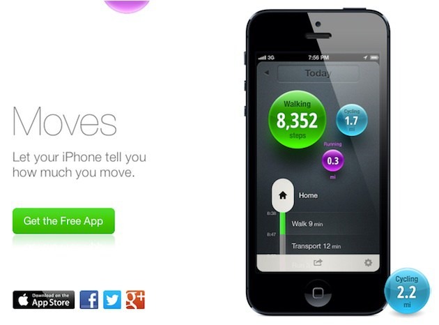Moves – автоматтык түрдө сиздин баскан кадамыңызды, чуркоо аралыгыңызды жаздырат. Бир күндө басып жүргөн жолуңузду, сейилдеген көчөлөрдү картадан көрсөтүп бере алат. Баскан кадамыңыздын ылдамдыгын эсептеп, убактысын айтып берет. Алдыга баса турган же чуркай турган аралыкты пландап алып аткарууга болот. Машинада же маршруттук каттамдарга түшкөндө автоматтык түрдө аралыкты, убакытты эсептебейт.