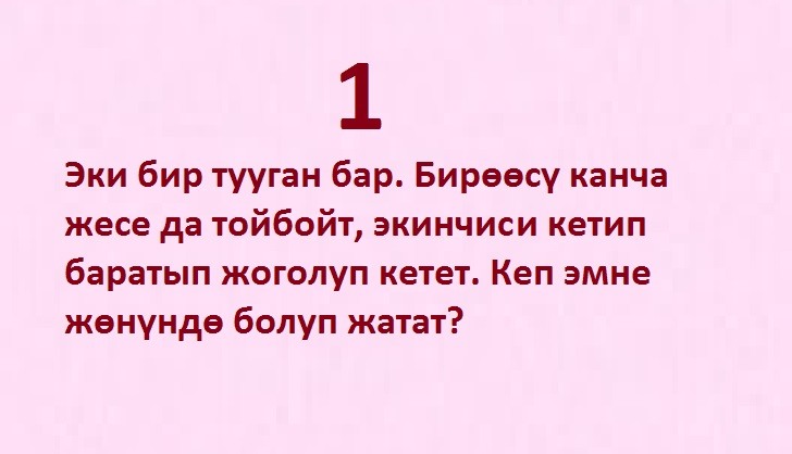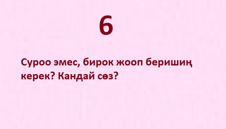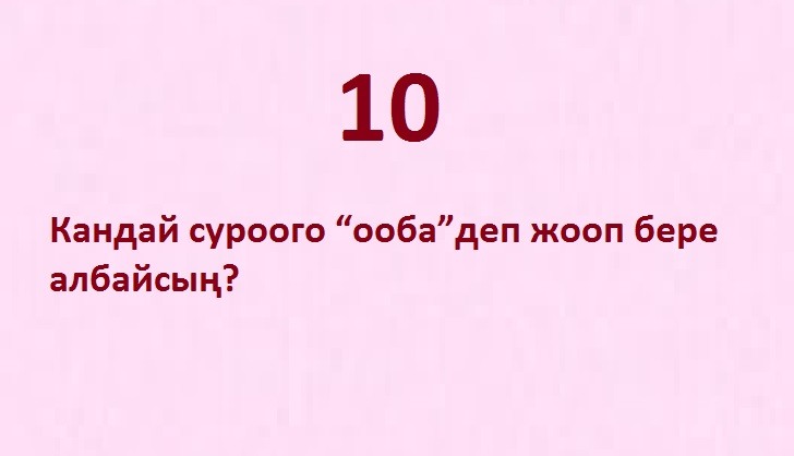 Бул кызыктуу суроолорго жооп берип өзүңдү сынап көр. Ийгилик!