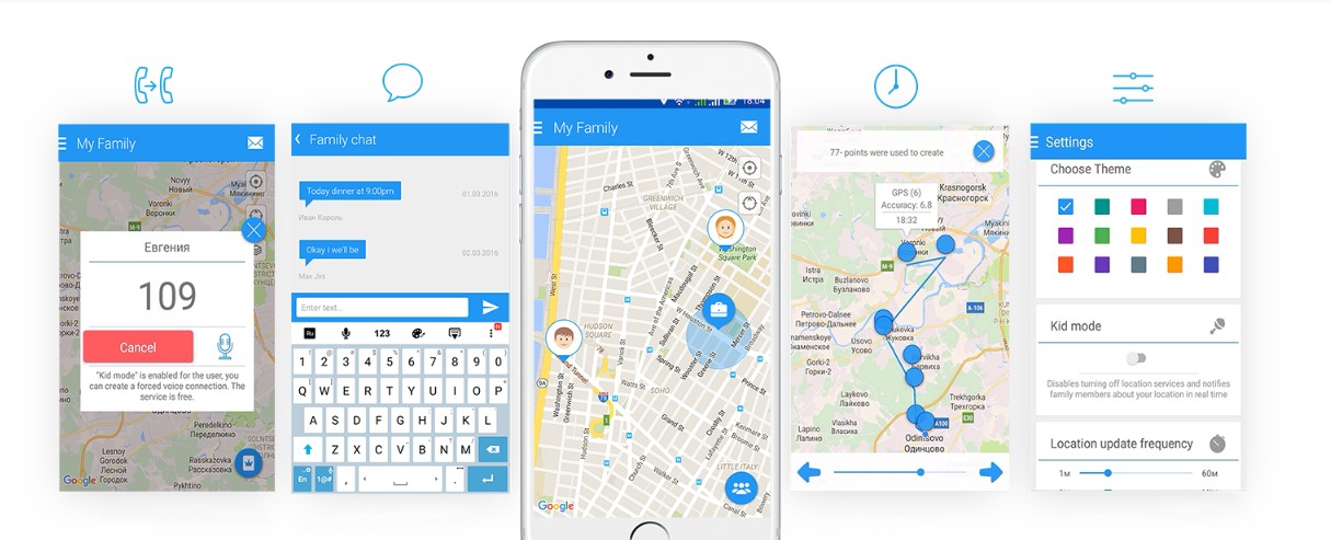 iOS менен Android үчүн «Менин үй-бүлөм» акысыз колдонмосу мобилдик телефон аркылуу картадан (гео-багыт) үй-бүлө мүчөлөрүнүн жайгашкан жерине көз салууга, чат жүргүзүүгө, ал тургай, катуу сүйлөгүч менен балага чакырык жасоого мүмкүндүк берет.