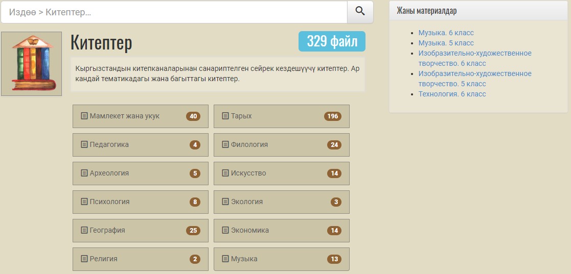 Билим АКИпресс порталынын китепкана бөлүмүнөн мектеп окуу китептерин, диссертацияларды, эпосторду таап окуй аласыз.