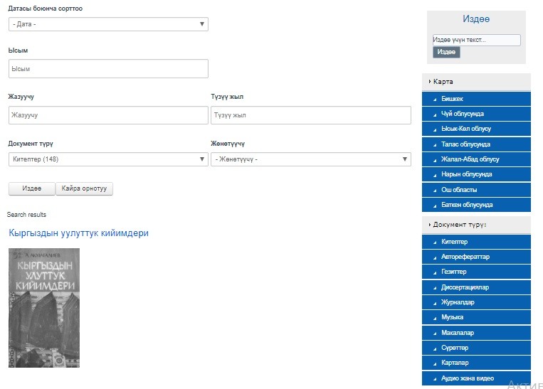 Аталган долбоордун максаты: Кыргызстандын Улуттук Электрондук китепкананын web-порталын түзүү жана эркин маалымат алмашуу. Кыргызстандын баардык аймактарындагы китепканалар санариптештирилген. Бул жерден ар кандай документтерди, китептер, журналдар, гезиттер, карталар, ноталар, аудиофайлдар, видеофайлдар, авторефераттар, диссертацияларды таба аласыз.