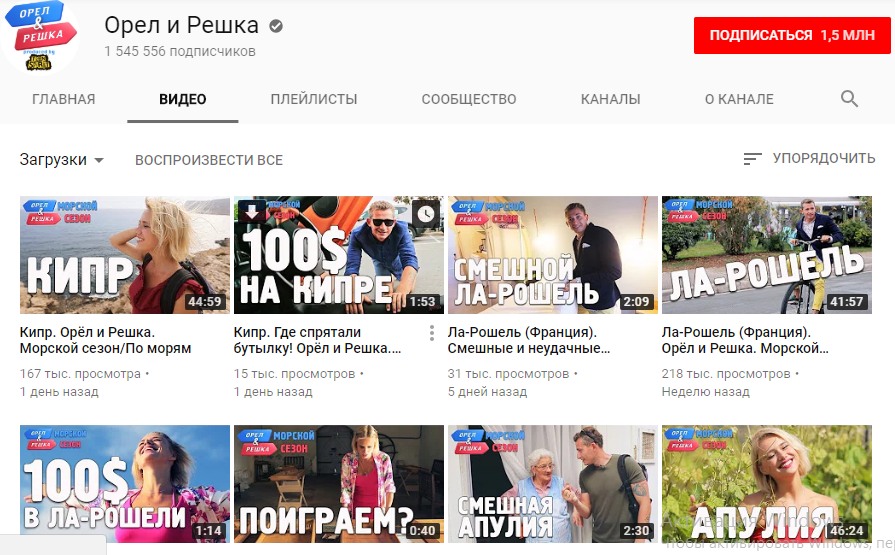 «Орёл и Решка» YouTube’га 2011-жылдын 4-ноябрында каттоого туруп, азыркы күндө 1 545 556 жазылуучусу менен 419 092 104 көрүүгө ээ болгон.