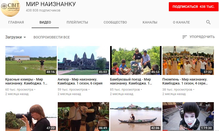 “Мир наизнанку” каналынан автору туристик турлар менен барууга болбой турган өлкөлөрдү кыдырып, адам таңгалаарлык өзгөчөлүктөрүн көрсөтөт.