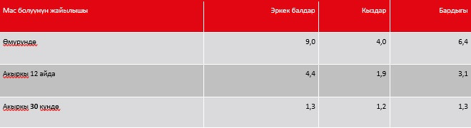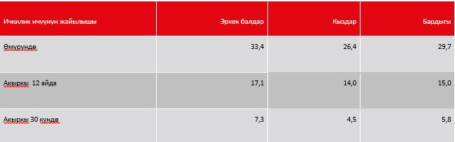 3-ТАБЛИЦА: Ичкилик ичүүнүн жайылышы эркек балдар жана кыздар арасында, %: