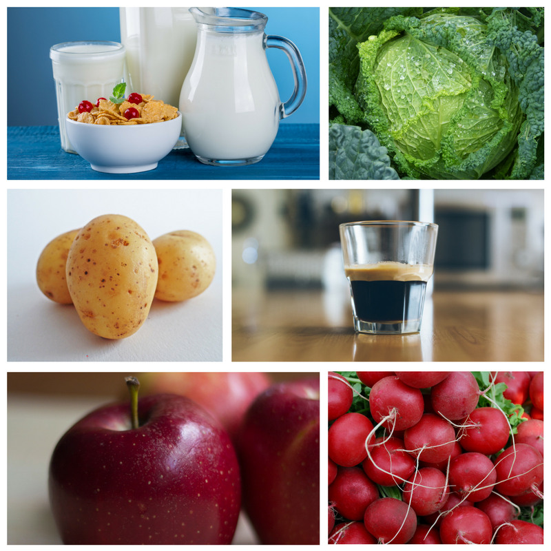 - Структурасы бирдей азыктар. Алма, кара нан, картошка, капуста, турп, редиска жана ушуга окшош азык түлүктөрдү өлчөмүнөн көп колдонуу газ алмашууну жогорулатат.