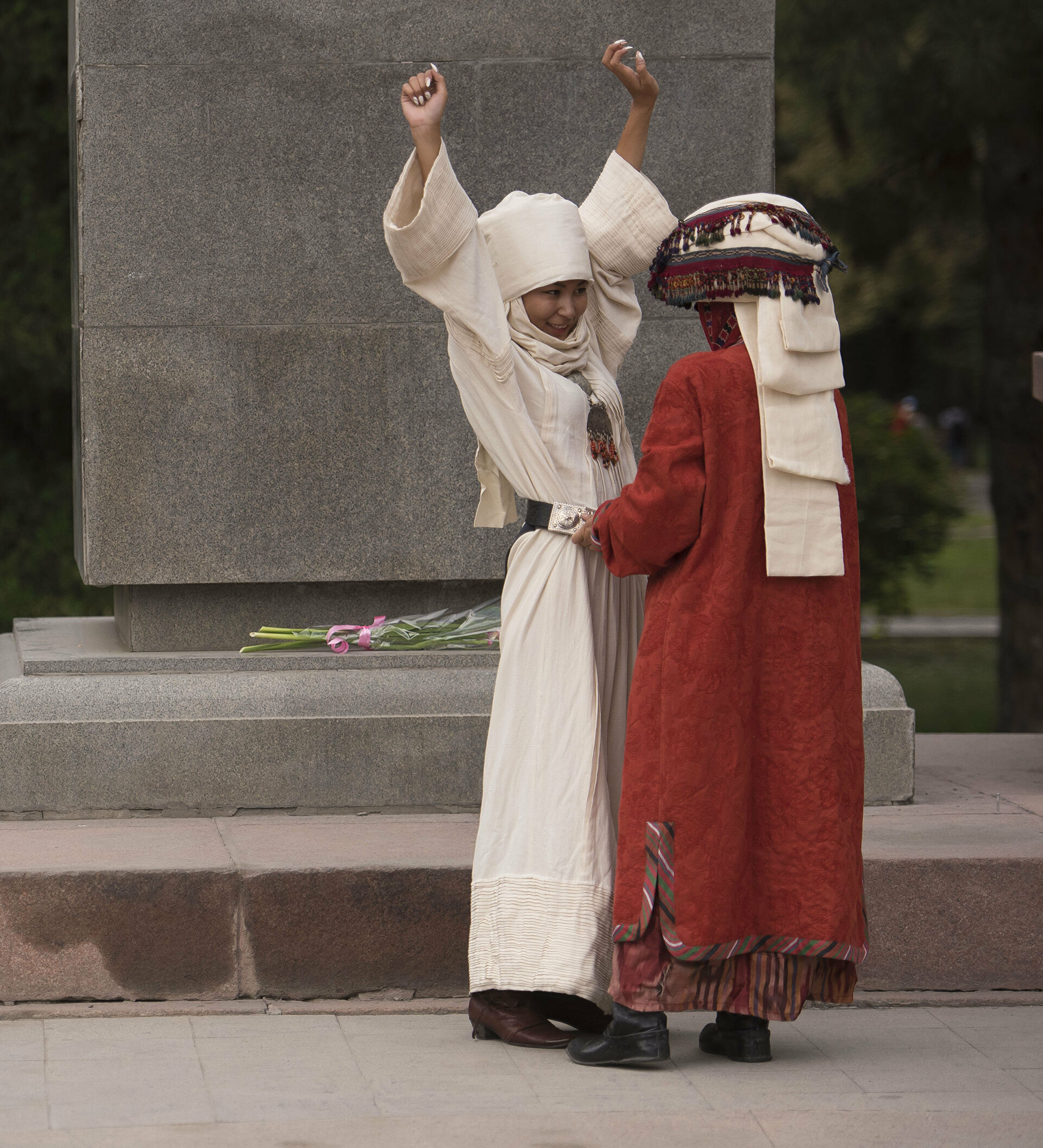Бир жолу үйгө коноктор келген. Атамдын аяштары. Жетишпей эки жакка чуркап жүргөнбүз. Бир маалда ашканага кирсем жеңем бийлеп жатыптыр. Ушундай берилип алыптыр. Мени көрүп өзүнө тартты. Мага эмне, ага кошулуп бийлей бердим. Байкем кирип келип калды.
