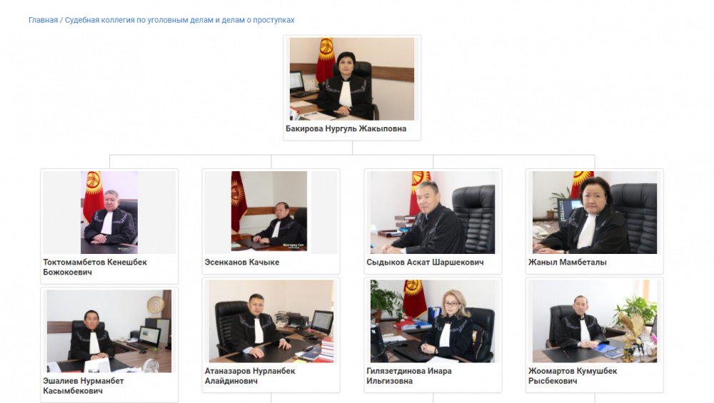- Жогорку Соттун бардык судьяларынын жана кызматкерлеринин өмүр баяны.